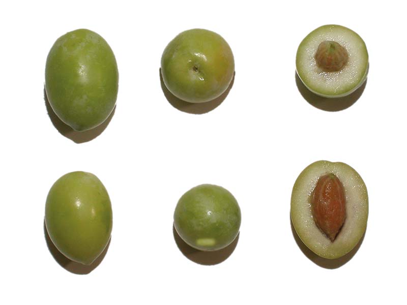 | Endocarpo Peso (g) Grande (0,57 20,2) Lunghezza (cm) 1,6±20,17 Larghezza max (cm) 0,76±0,09 Forma Ellittica (2,1 ± 0,20) Simmetria nocciolo Leggermente asimmetrico Posizione diametro max Centrale Rilievo superficie Scabrosa Numero solchi fibrovascolari Medio Distribuzione solchi fiorovascolari Non uniforme Andamento solchi fibrovaseolari Regolare Rilievo linea di sutura Evidente Forma sezione trasversale max Circolare Forma apice Arrotondato Forma base Arrotondata Mucrone Presente | ![]() ![]() |